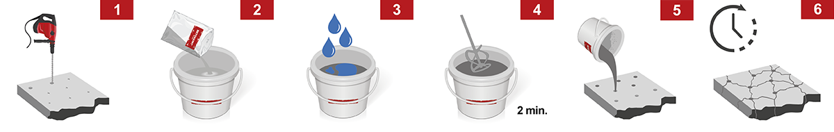 BETONAMIT® 20 kg - Posebne zahteve ali zmogljivosti za delo niso potrebne. - Enostavno in ciljno rušenje kamnine in betona brez dovoljenj za miniranje....